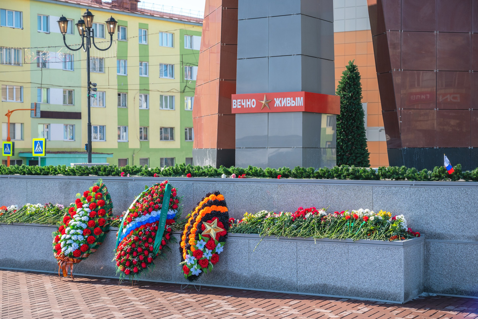 Памятник «Вечно живым» открыт 16 сентября 2008 года на площади Победы в районе Талнах. Сооружен на месте демонтированного в 2002 году памятника «Воину-освободителю».